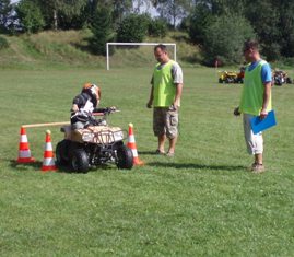 | Závod zručnosti se jel na jednom stroji | všichni jsme museli mít přilbu | a všichni jsme chtěli ukázat jak jsme šikovní |