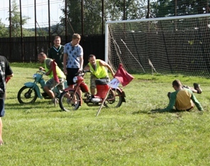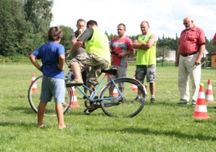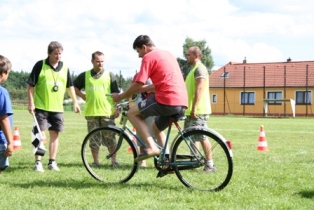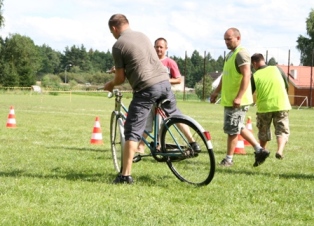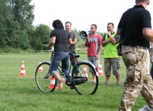 | Přejezd houpačky zvládli všichni bez problému | No co je na tom, jízda na kole - to zvládne každý | ono to není obyčejné kolo, koukněte se jak jsou natočena řidítka a jak je natočené kolo |